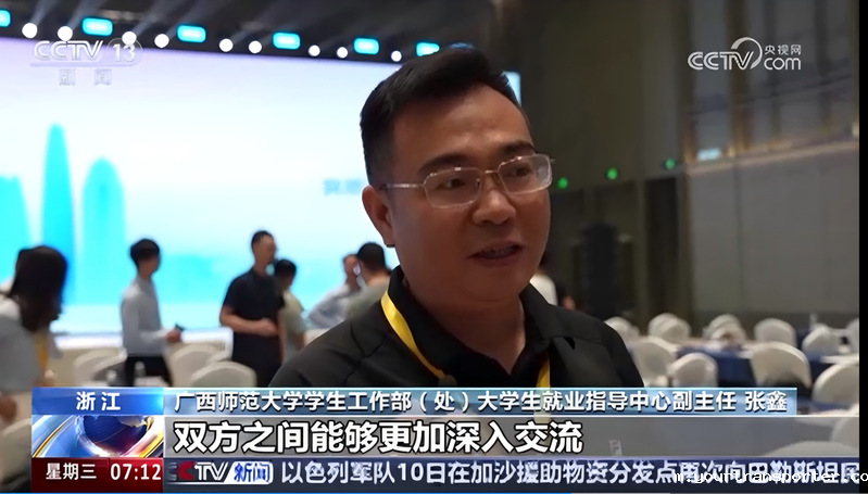 6月10日,教育部“百县对百校促就业行动”首场校企供需对接会暨“百所高校学子宁波行”活动在浙江宁波举行。我校党委研究生工作部相关负责人、学生工作部(处)大学生就业指导中心相关人员及历史文化与旅游学院、职业技术师范学院学生代表受邀参加首场校企供需对接会;在活动现场,我校参会代表在接受中央电视台新闻频道采访时,介绍了参加校企供需对接会的收获。