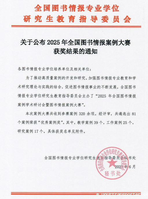 【喜报】我校图书馆/图书情报研究所在2025年全国图书情报案例大赛中再创佳绩